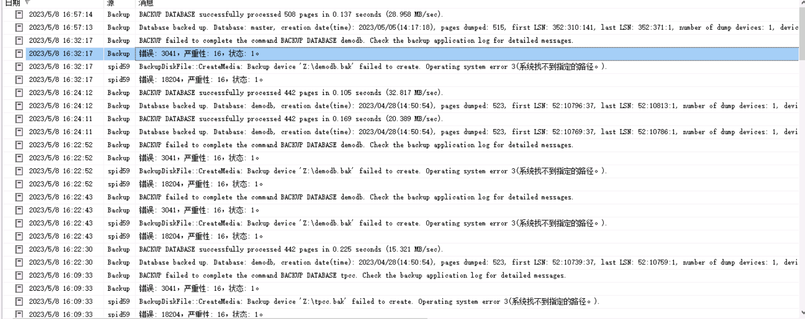 在SQL Server的官方文檔里面可以看到備份和還原的表,但是這些表里面只能找到備份成功的相關信息,無法找到備份失敗的記錄,比如msdb.dbo.backupset。對于一些監(jiān)控系統(tǒng)未監(jiān)控作業(yè)的情況下,想要監(jiān)控數(shù)據(jù)庫備份任務執(zhí)行失敗而觸發(fā)告警規(guī)則,有些麻煩。
