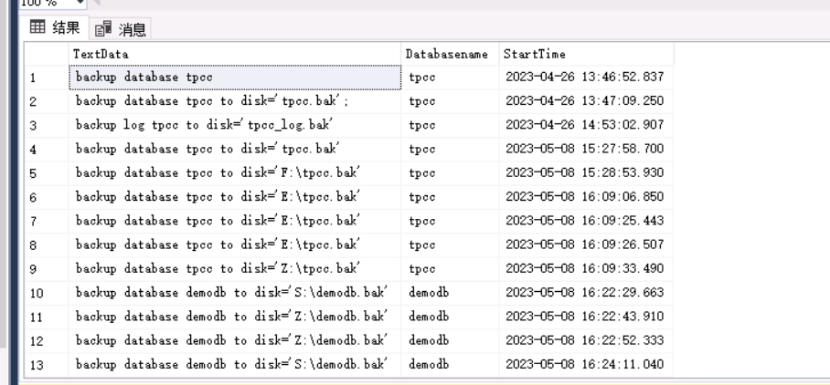 形成了具體的思路后,下面將trace轉(zhuǎn)換的表的StartTime列與backupset表的backup_start_date列進行對比判斷