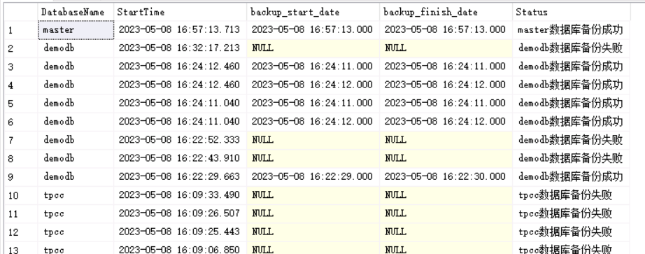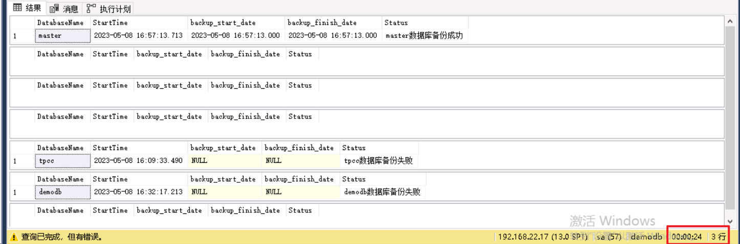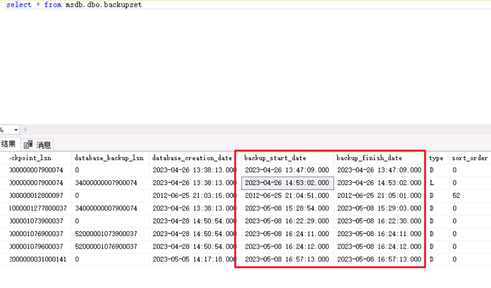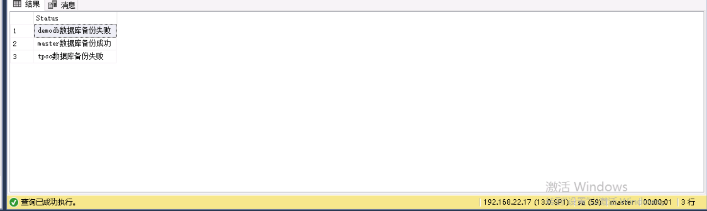3 結合備份表backupset,判斷備份狀態(tài)篩選出所有數(shù)據(jù)庫的備份任務執(zhí)行情況