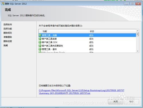 9、 然后進入“完成”階段,查看功能刪除狀態,然后點擊“關閉”,如下圖所示: