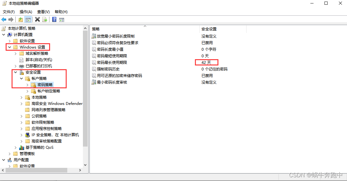按照下圖打開(kāi)選擇密碼策略 修改密碼最長(zhǎng)使用期限,就可以達(dá)到 延長(zhǎng)效果了