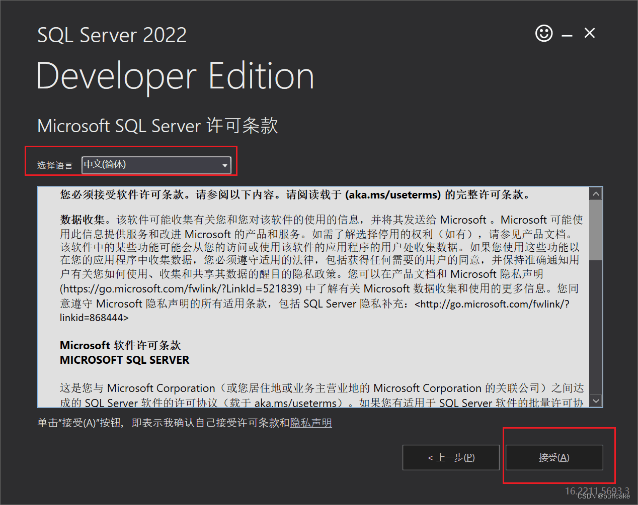 (4) 默認(rèn)中文簡體,點(diǎn)擊接受;