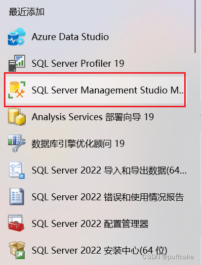 (4)按【W(wǎng)indows】鍵,在最近添加里打開SQL Server Management Studio Management Studio 19,并且拖到桌面,增加快捷方式