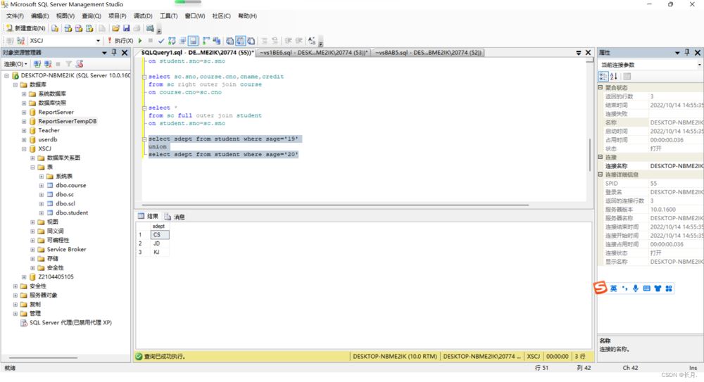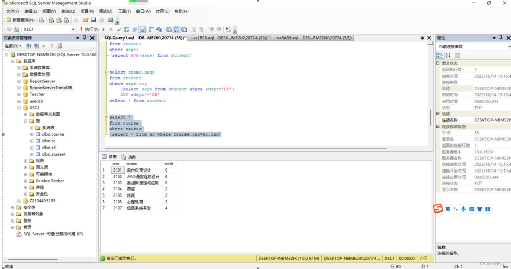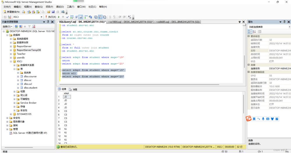 到此這篇關于SQL Server數據庫連接查詢和子查詢的文章就介紹到這了,更多相關SQLServer連接查詢和子查詢內容請搜索以前的文章或繼續瀏覽下面的相關文章希望大家以后多多支持!