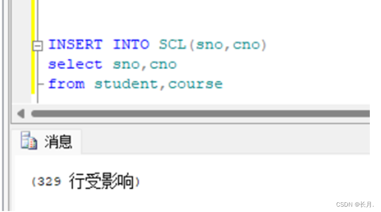 INSERT INTO SCL(sno,cno)select sno,cnofrom student,course