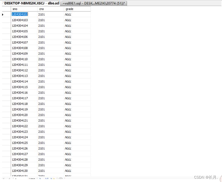 - 18.將所有的學號和課程號信息生成一個新表SCL