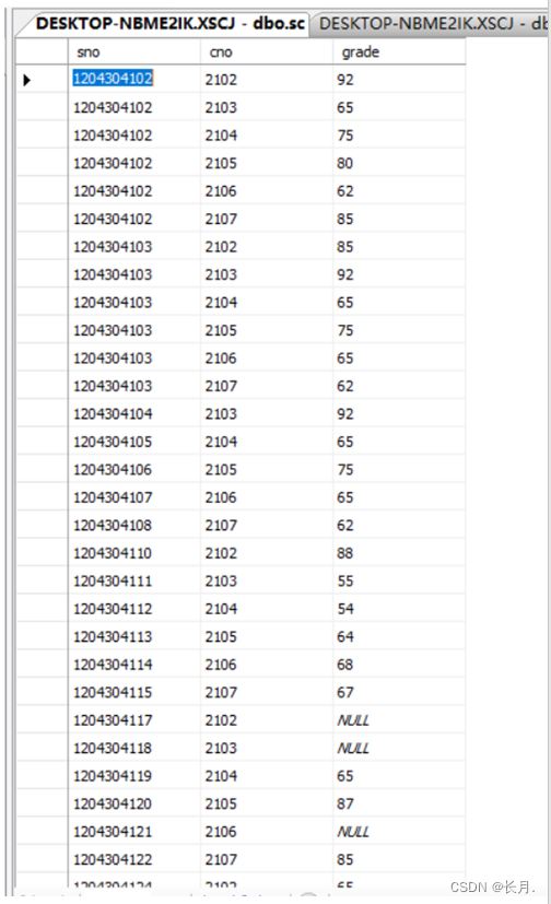 - 5.用格式二實現查詢所有學生的學號、姓名、選修課程號和成績
