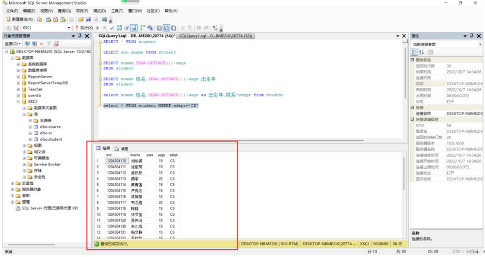 SELECT sname,YEAR(GETDATE())-sageFROM student