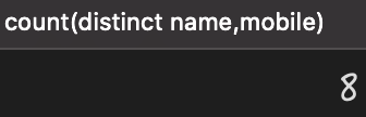 從上述結果可以看出手機號一列的 10 條數據都是不同的,但查詢的結果卻為 8。