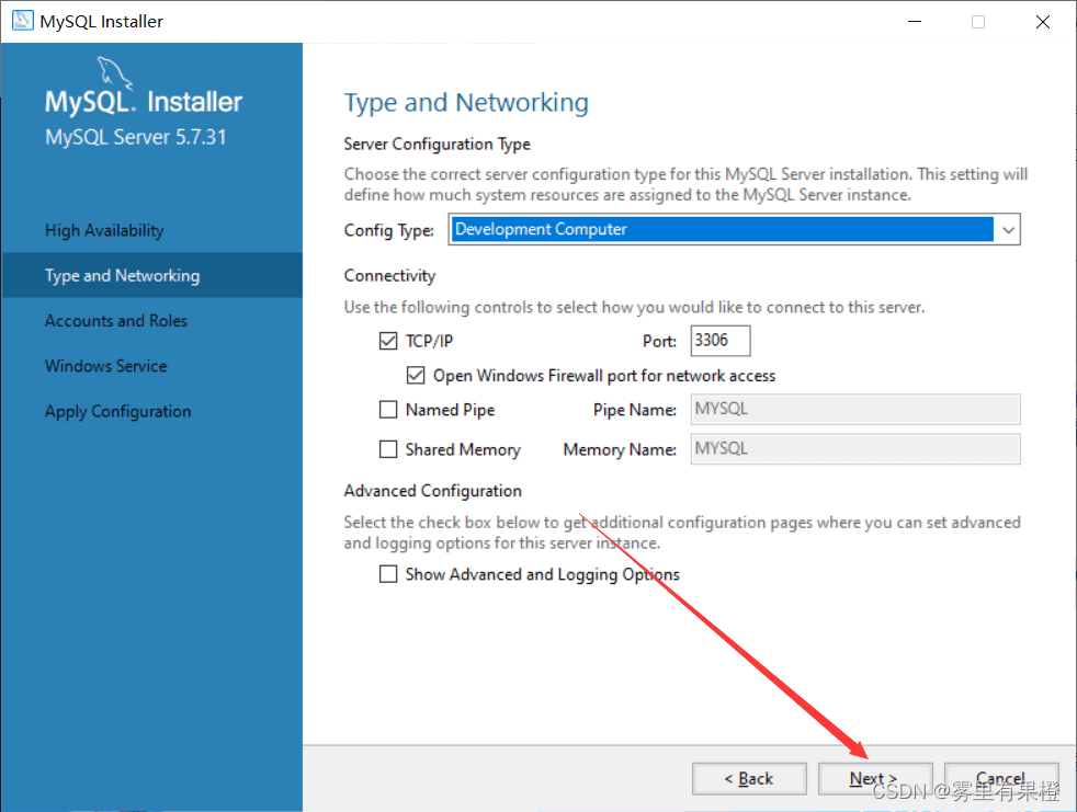 MySQL的默認端口是3306,不需要作修改,直接點擊“Next”