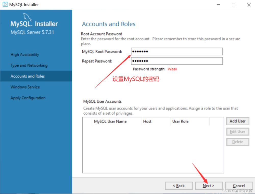 這里需要設置MySQL的密碼,不需要太復雜,設置完了直接點擊“Next”