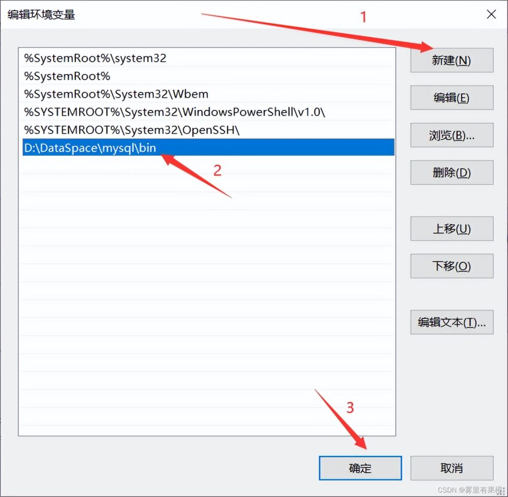 - 5. 點擊“新建”,將MySQL的安裝路徑添加上去,之后點擊“確定”