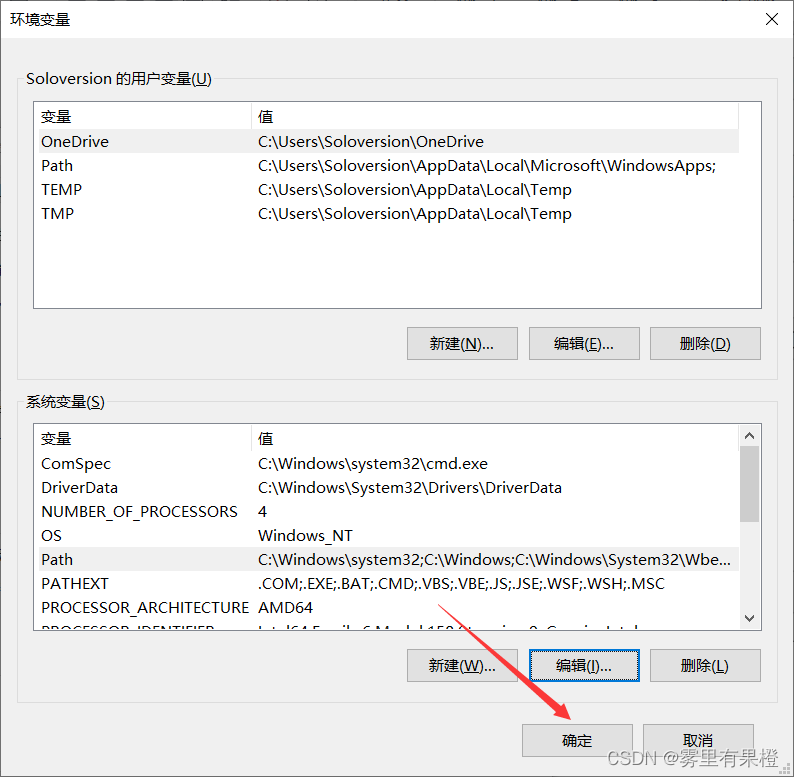 - 4. 在“系統變量”中選擇“Path”,點擊“編輯”
