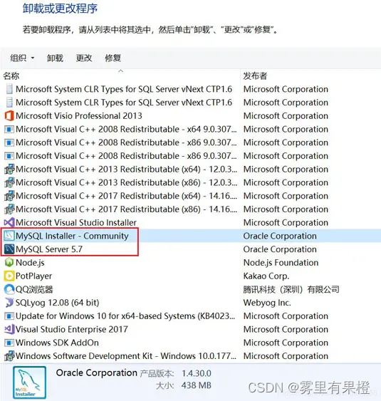 第一步,進入…控制面板\程序\程序和功能,卸載下圖中的MySQL兩個軟件。