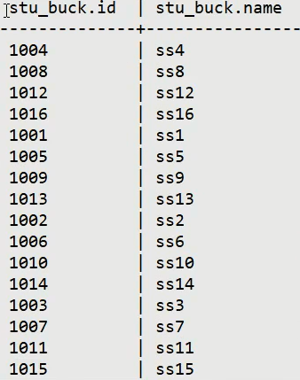 create table stu_buck( id int, name string)clustered by (id) sorted by (id) into 4 buckets //根據id的hash值按4取模row format delimited fields terminated by "\t";