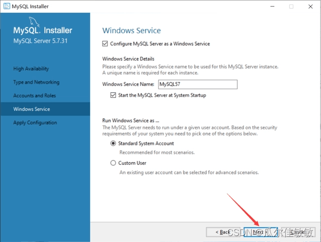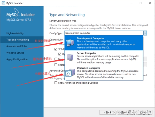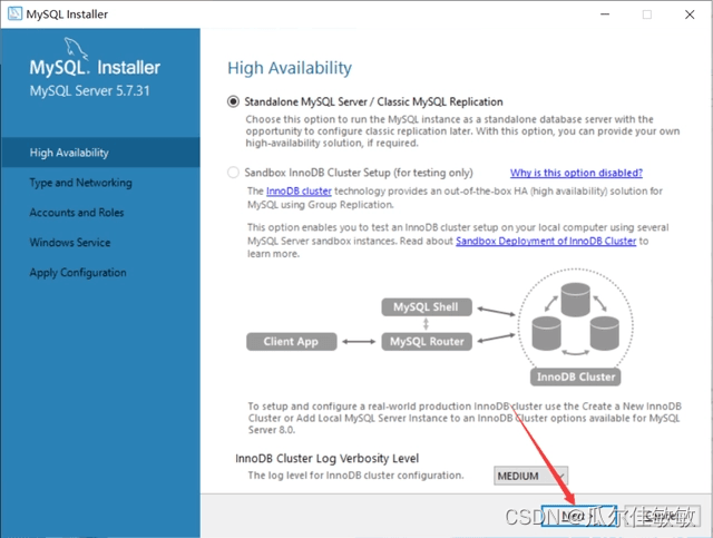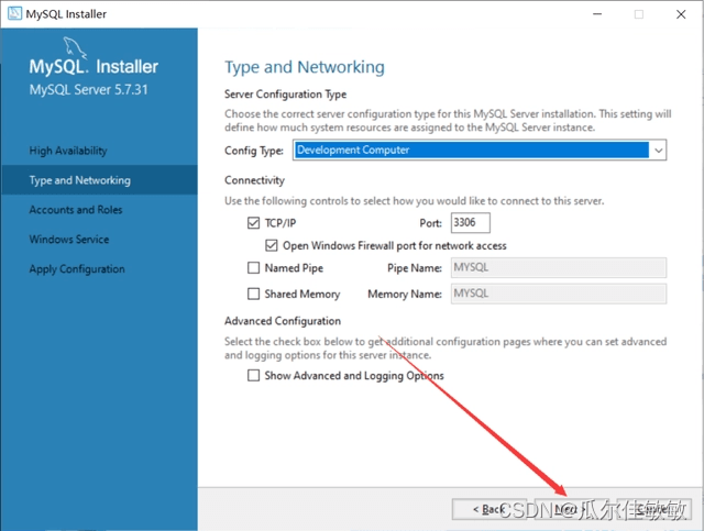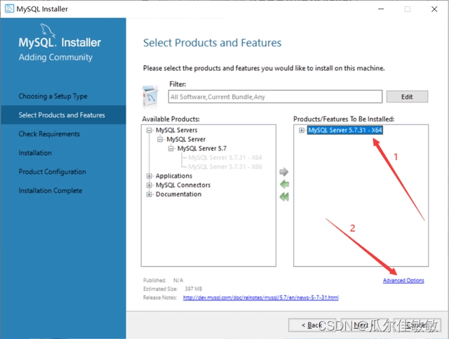 3. 先選中“MySQL Server 5.7.31” ,之后點擊下方的藍色“Advanced Options”