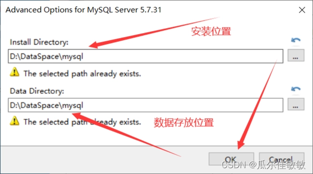 - 4. 自定義安裝路徑和數據存放路徑,更改完成之后點擊“OK”