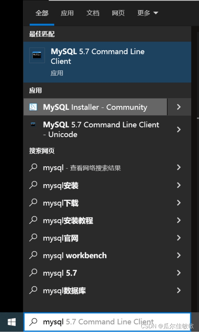 25. 在開始界面搜索mysql,點擊第一個MySQL 5.7 Command Line Client
