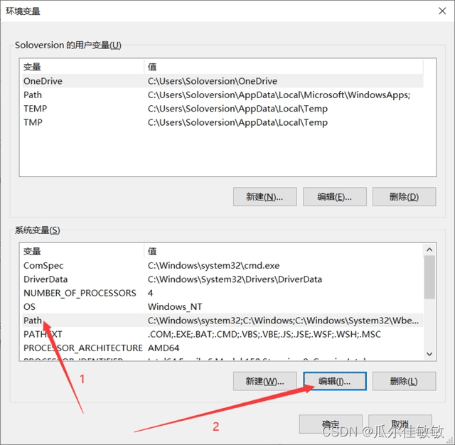 - 4. 在“系統變量”中選擇“Path”,點擊“編輯”