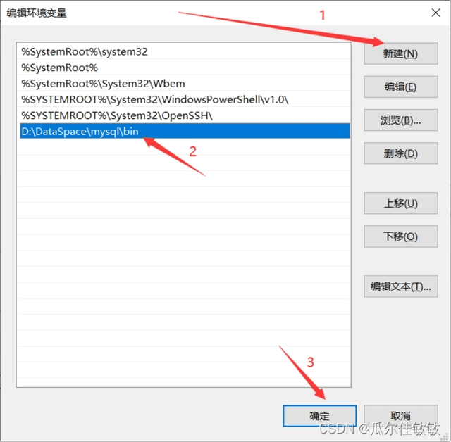 - 5. 點擊“新建”,將MySQL的安裝路徑添加上去,之后點擊“確定”