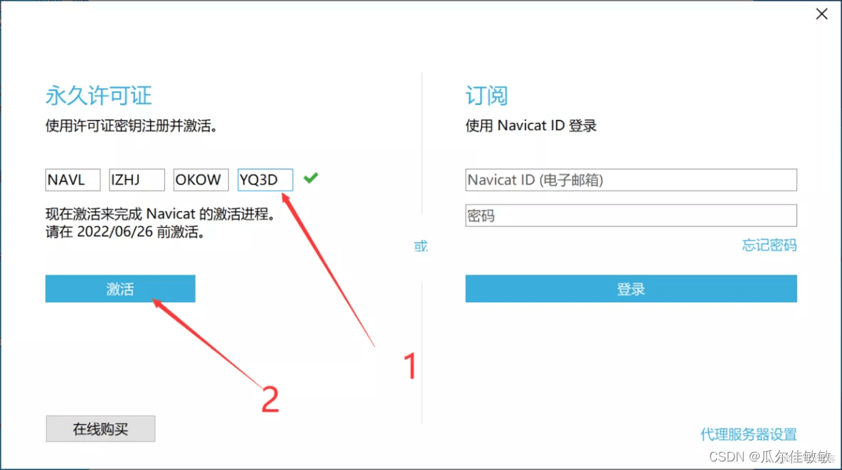 - 21. 返回Navicat for MySQL界面,此時激活碼處已經自動填充了激活碼,點擊“激活”