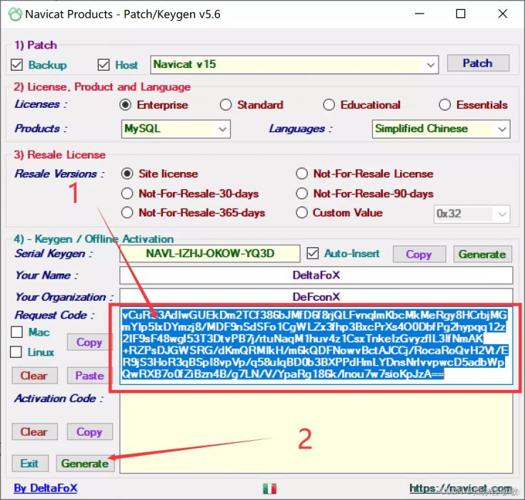 - 20. 回到注冊機,在注冊機下方紅框中粘貼上面復制的請求碼,之后點擊“Generate”