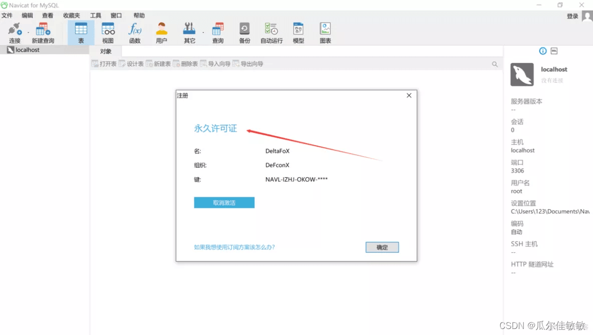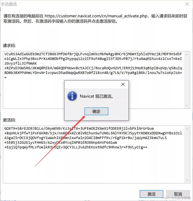 21. 返回Navicat for MySQL界面,此時激活碼處已經自動填充了激活碼,點擊“激活”