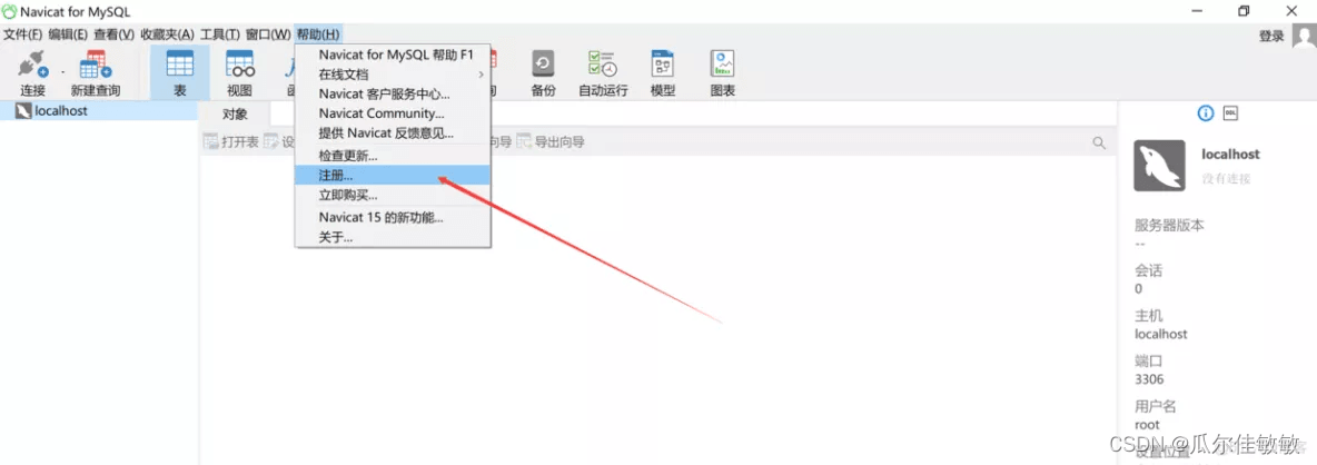 打開Navicat for MySQL軟件,點擊幫助 — 注冊