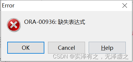 報錯提示:ORA-00936:確實表達式,如下圖所示,看來in不支持子查詢。