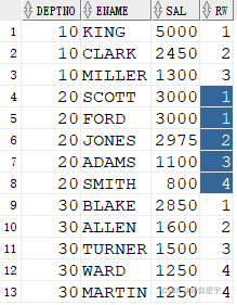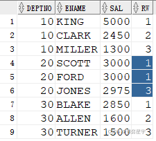 3. row_number()值相同時(shí)排名不相等,其后排名連續(xù)不跳躍