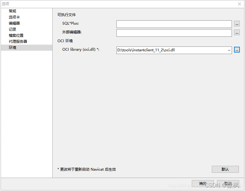 在Navicat中配置OCI環境后,重啟Navicat即可。