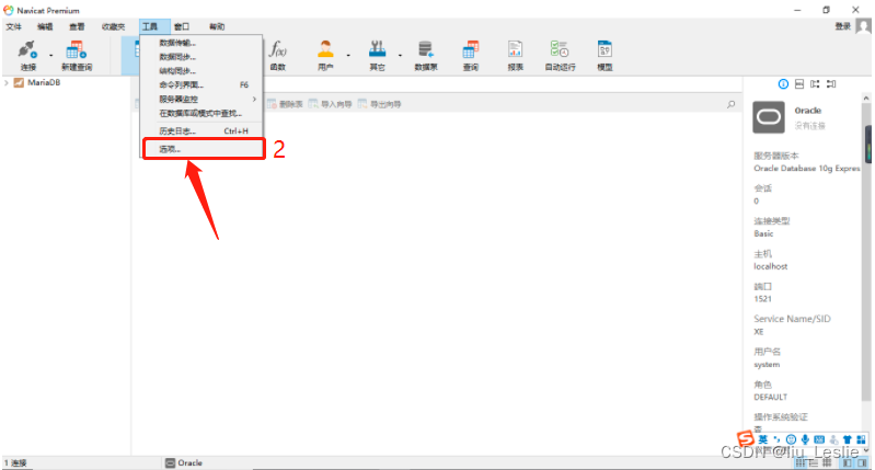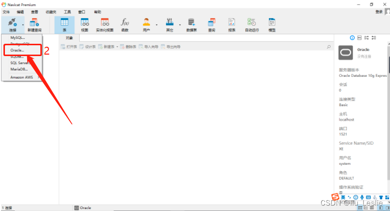 4、連接Oracle數據庫,依次點擊:連接 --> Oracle 進行新建連接 ; 如下圖: