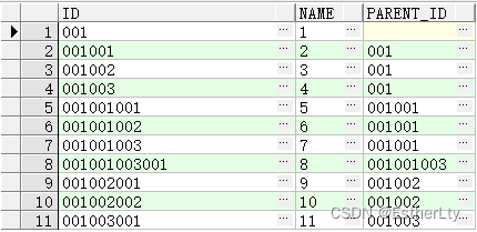 也可以寫成connect by id= [prior] parentid,這種用法就表示從下往上查找數據,可以理解為從葉子節點往上查找父級幾點,用第一層數據的parentid去跟表記錄里面的id進行匹配,匹配成功那么查找出來的就是第二層數據;上面的那種就是從父級節點往下查找葉子節點。