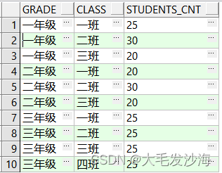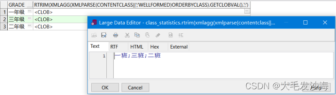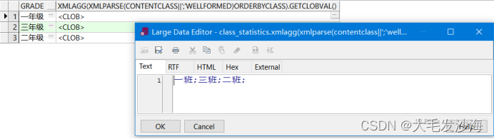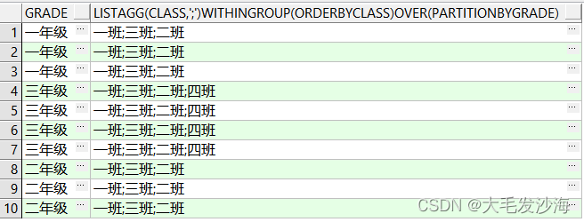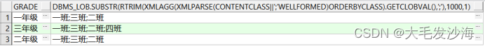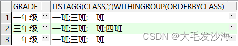 實戰:查詢各年級涉及的班級,多個班級用“;”隔開按一行合并展示。