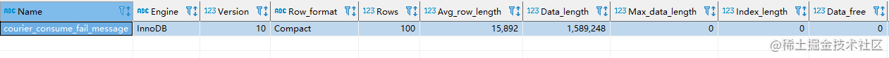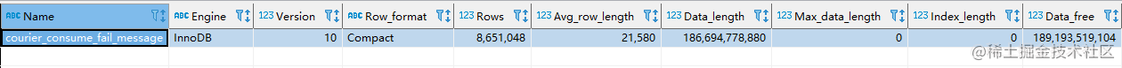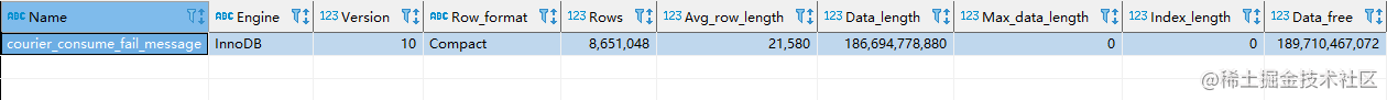 三、清理碎片下面是執(zhí)行 OPTIMIZE TABLE courier_consume_fail_message; 后的統(tǒng)計(jì)。