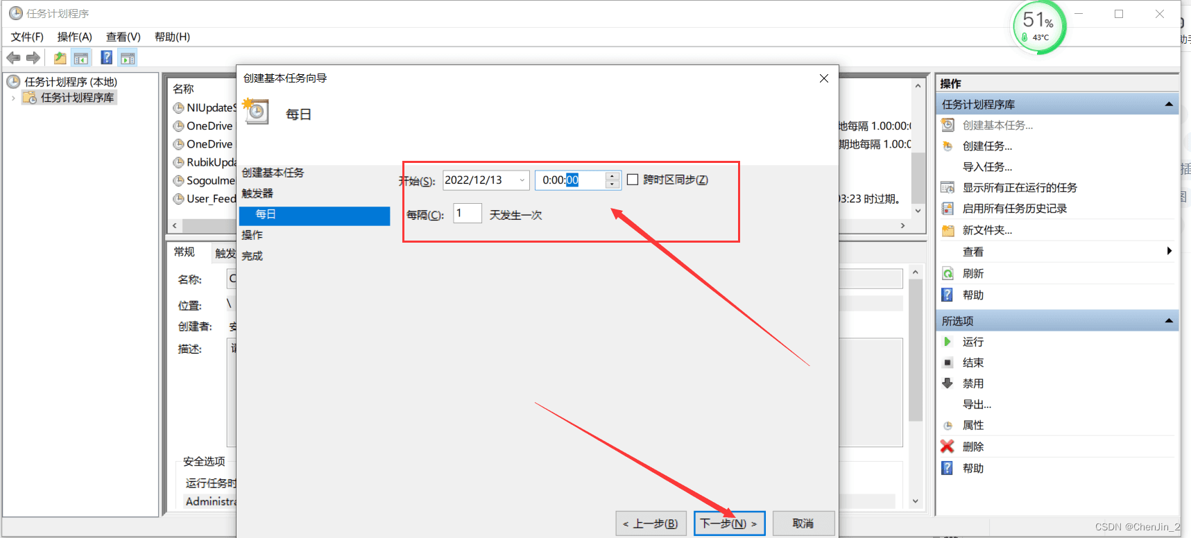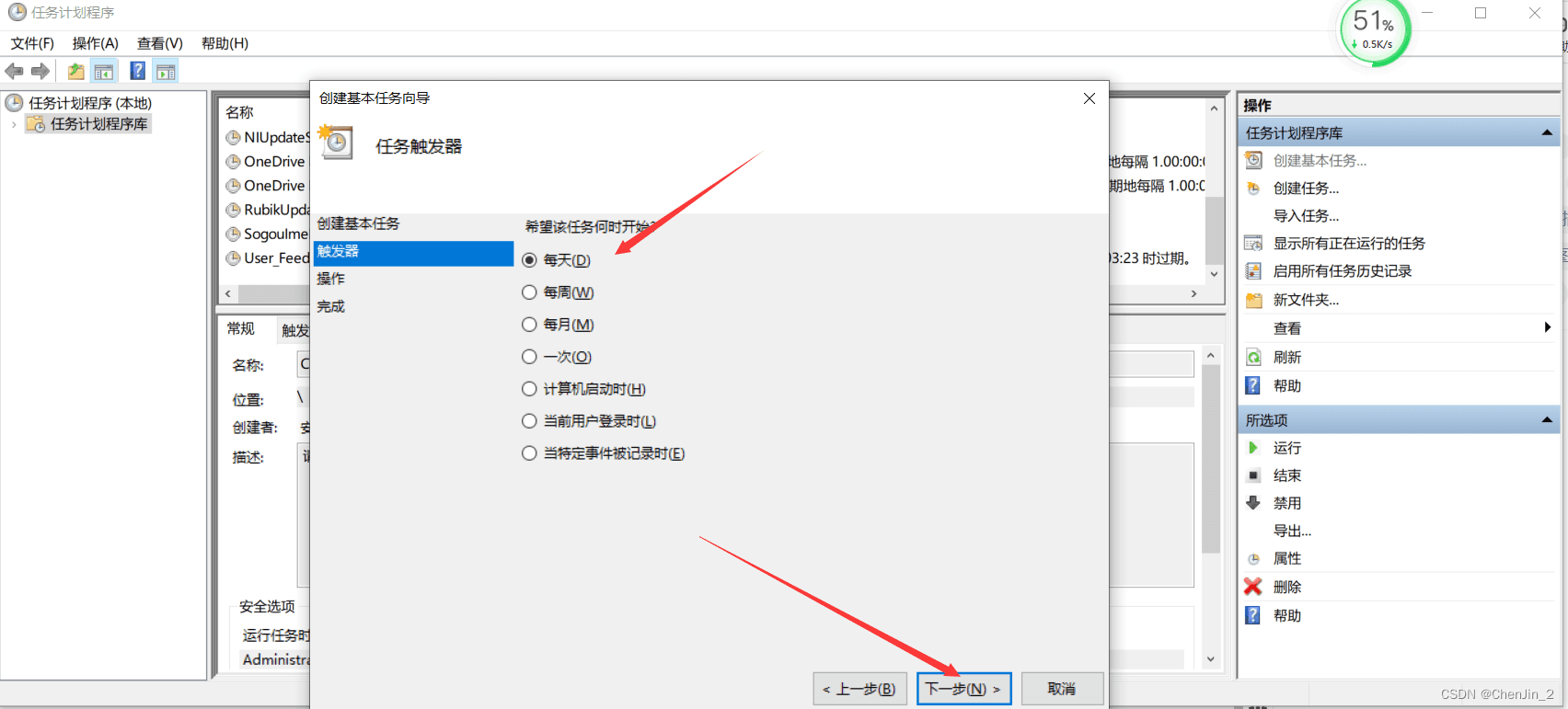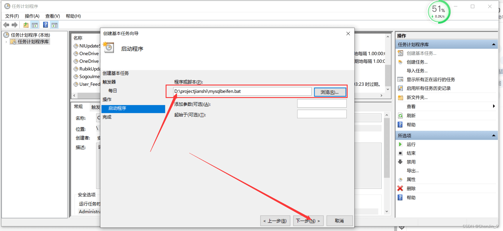 目錄1、編寫腳本xxx.bat2、實現(xiàn)定時任務(wù)2.1、打開任務(wù)計劃程序2.2、創(chuàng)建基本任務(wù)2.3、輸入名稱 點擊下一步2.4、設(shè)置觸發(fā)器 點擊下一步2.4、設(shè)置執(zhí)行時間 點擊下一步2.5、設(shè)置自動程序 點擊下一步2.6、選擇腳本所在位置 點擊下一步2.7、點擊完成2.8、設(shè)置安全選項2.9、點擊確定輸入自己電腦密碼再次點擊確定。2.10、任務(wù)設(shè)置成功總結(jié)1、編寫腳本xxx.bat@echo offecho 設(shè)置MySql數(shù)據(jù)庫的連接信息set host=127.0.0.1set port=3306set user=rootset pass=123456echo 設(shè)置要備份MySql數(shù)據(jù)庫名稱set dbname=projectmonitoringecho 獲取當(dāng)天的日期格式,例如:2022-12-13-14-30-40set backup_date=%date:~0,4%-%date:~5,2%-%date:~8,2%-%time:~0,2%-%time:~3,2%-%time:~6,2%echo 設(shè)置備份文件的路徑set backupfile=D:\projectjianshi\sql\mysql\%dbname%-%backup_date%.sqlecho 使用mysqldump對指定的MySql進(jìn)行備份echo 注意路徑中有空格的要加上雙引號'C:\Program Files\MySQL\MySQL Server 5.7\bin\mysqldump' -h%host% -P%port% -u%user% -p%pass% -c --add-drop-table %dbname% > %backupfile%echo 刪除過期文件,這里是超過30天就刪除forfiles /p D:\projectjianshi\sql\mysql\ /s /m *.sql /d -30 /c 'cmd /c del @file /f'exist2、實現(xiàn)定時任務(wù)2.1、打開任務(wù)計劃程序