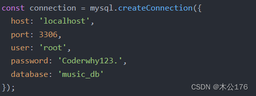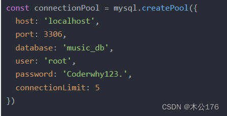 const mysql = require('mysql2')// 1.創建一個連接const connection = mysql.createConnection({ host: 'localhost', port: 3306, database: 'music_db', user: 'root', password: 'Coderwhy123.'})// 2.執行一個SQL語句: 預處理語句const statement = 'SELECT * FROM `products` WHERE price > ? AND score > ?;'connection.execute(statement, [1000, 8], (err, values) => { console.log(values)})// connection.destroy()mysql2-連接池使用