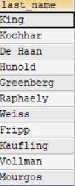 #已知manager_id有為null的數據SELECT last_nameFROM employeesWHERE employee_id NOT IN ( SELECT manager_idFROM employees);
