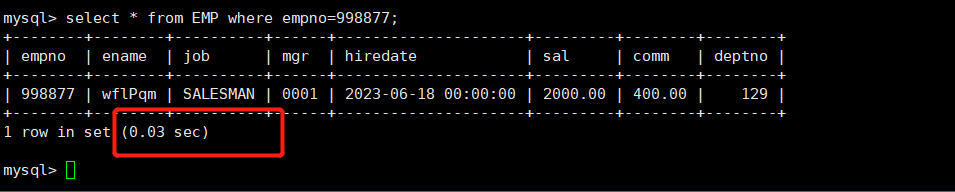 創建一個海量表,在查詢的時候,沒有索引時看一下會有什么問題