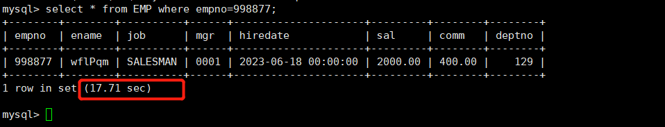 可以看到耗時17.71秒,這還是在本機一個人來操作,在實際項目中,如果放在公網中,假如同時有1000個人并發查詢,那很可能就死機,這是非常可怕的事情。
