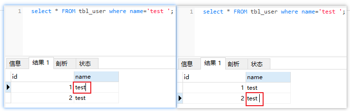 劃重點(diǎn),記筆記:在 MySQL5.7 及以下( <=5.7 )版本中,排序規(guī)則都是 PAD SPACE ,末尾的空格會忽略不考慮