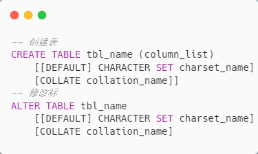 創(chuàng)建、修改表的時候,可以通過 CHARACTER SET 、 COLLATE 指定表的字符集、字符序