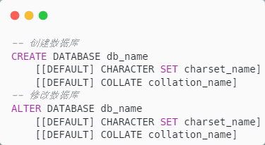創(chuàng)建、修改數(shù)據(jù)庫的時候,可以通過 CHARACTER SET 、 COLLATE 指定數(shù)據(jù)庫的字符集、字符序
