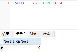 2、 LIKE ,類似 SELECT 'test' LIKE 'test ';