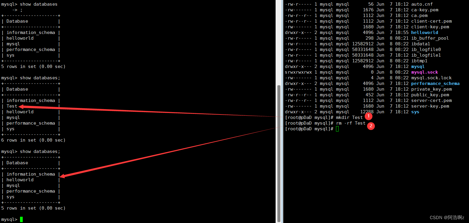 數(shù)據(jù)庫內(nèi)部看不到對應(yīng)的數(shù)據(jù)庫對應(yīng)的數(shù)據(jù)庫文件夾被刪除,級聯(lián)刪除,里面的數(shù)據(jù)表全部被刪