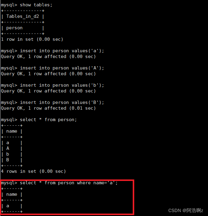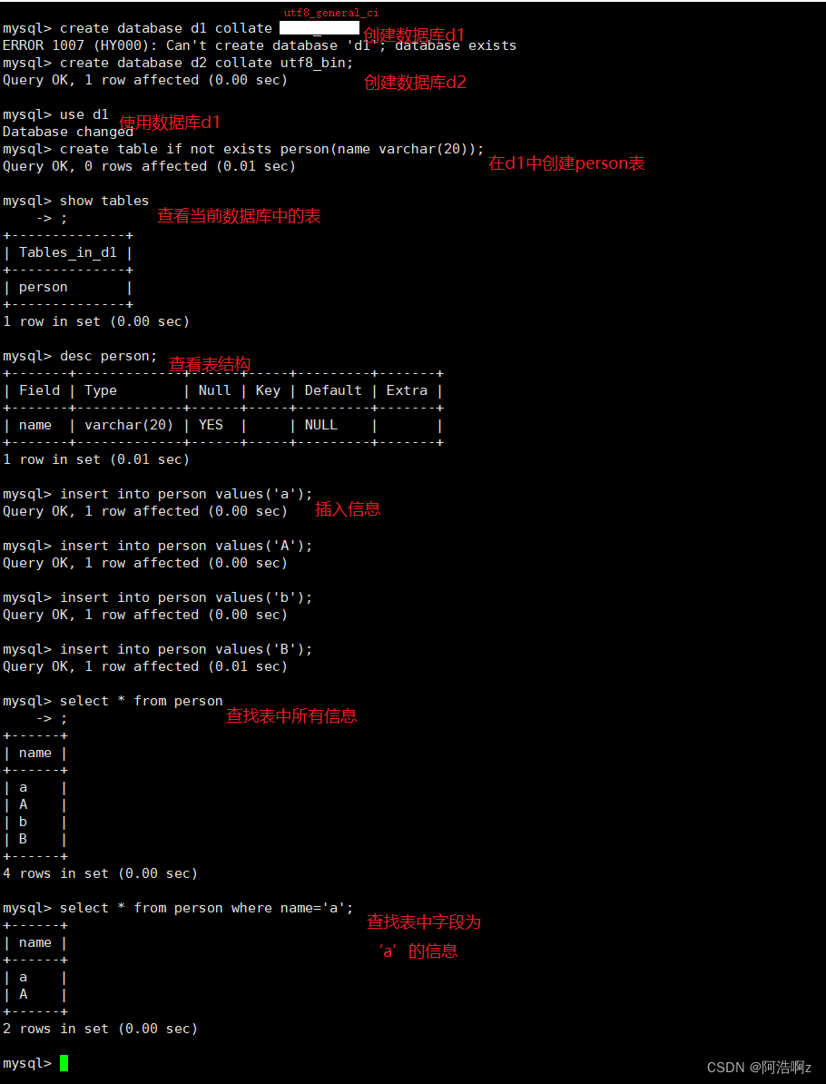 區(qū)分大小寫的查詢以及結(jié)果[utf8_ bin]