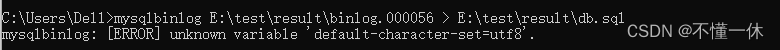 mysqlbinlog E:\test\result\binlog.000056 > E:\test\result\db.sql有可能報錯