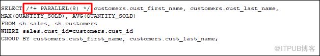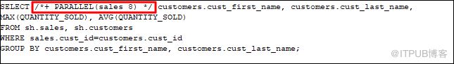 2)建議并行寫成PARALLEL(8),不要帶別名,則sales和customers都為DOP=8的并行。對于并行DML: