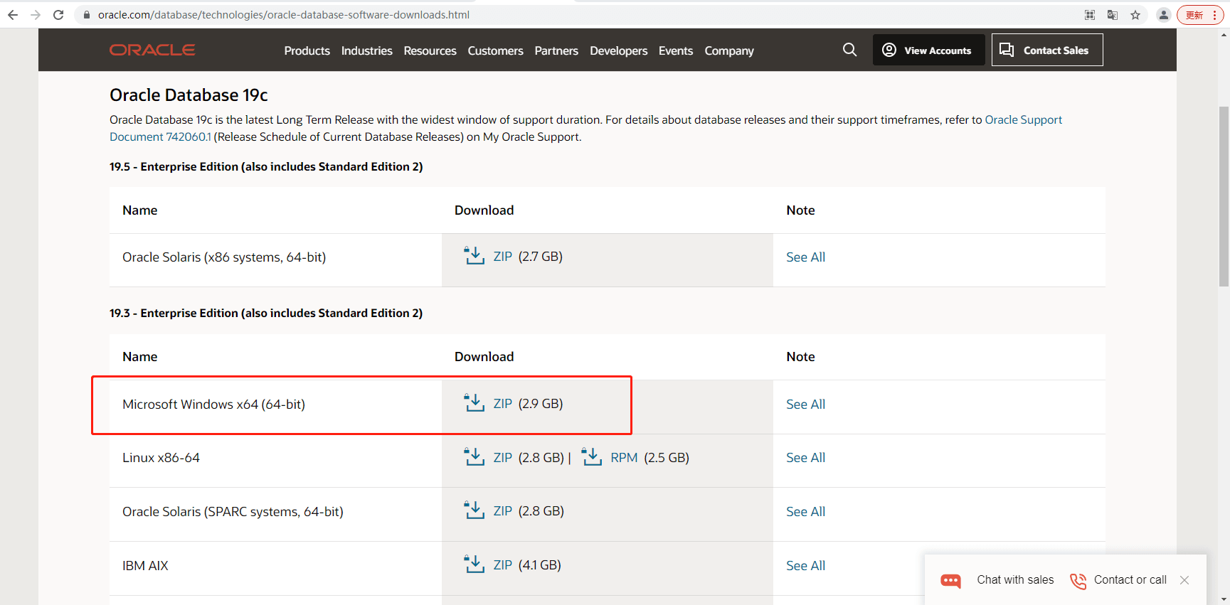 1. 數據庫搭建安裝oracle數據庫,進入官方下載,這里安裝選著的是官方19C的版本