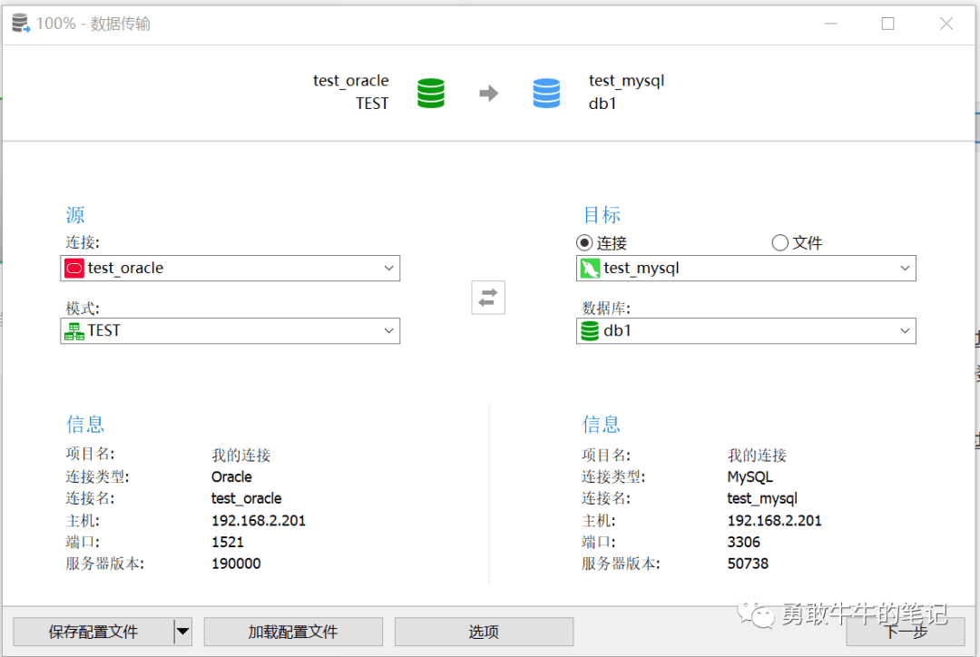 測試遷移方法:遷移方法適合場景測試場景navicat操作簡單,同步效率一般,適合小表的一次性遷移Oracle一次性同步表test.test1到MySQL下的db1.test1navicat+sqluldr+load data infile操作較復雜,同步效率高,適合少量大表的一次性遷移Oracle一次性同步表test.test1到MySQL下的db1.test1navicat+Oracle GoldenGate(OGG)操作復雜,同步效率較高,適合需要大批量的大表進行遷移以及需要實時增量同步Oracle全量+實時增量同步表test.test1,test2到MySQL下的db1.test1,test2遷移方式一(navicat)這種遷移方式主要適合小表的一次性遷移,navicat的同步效率速度一般。